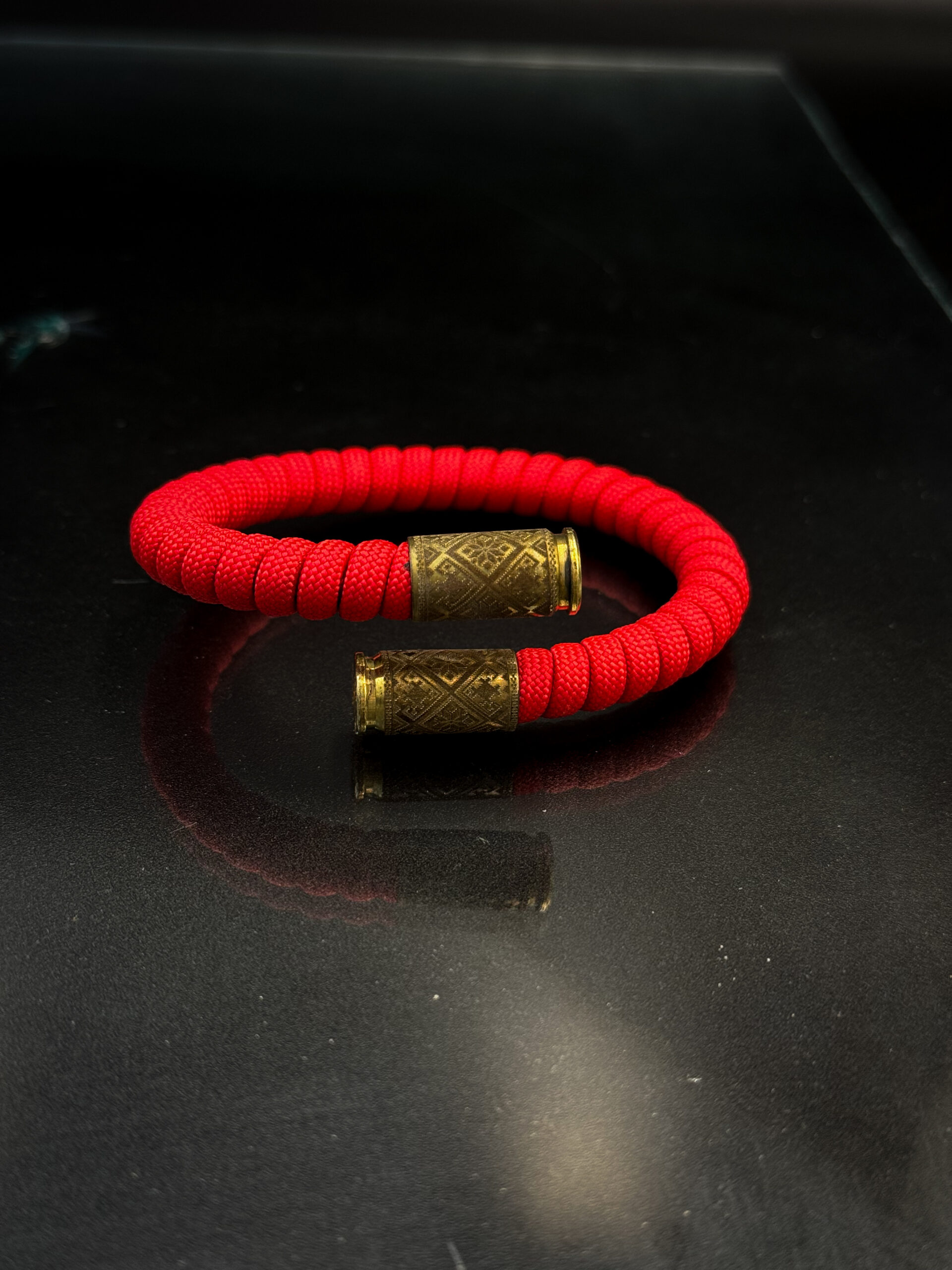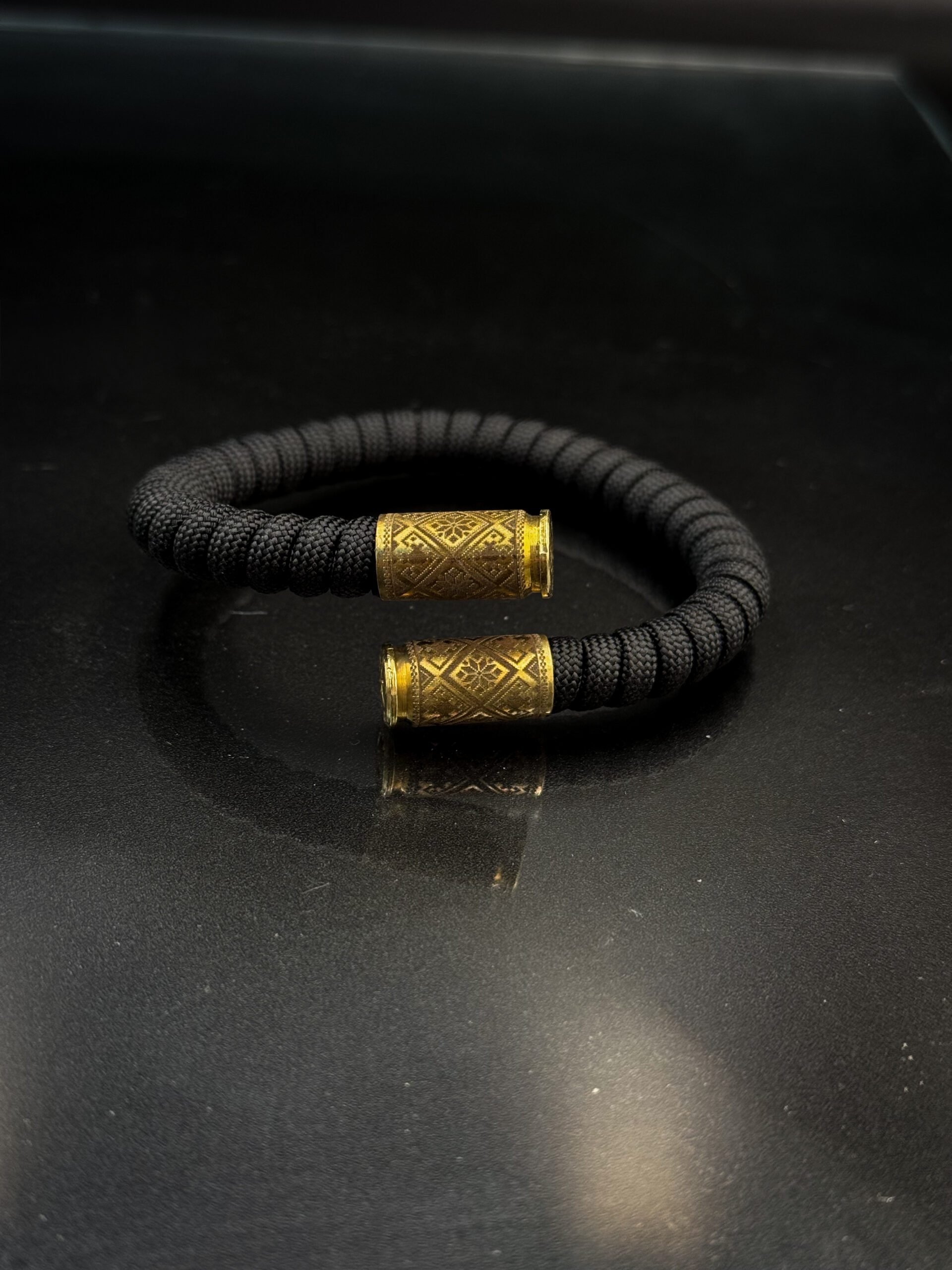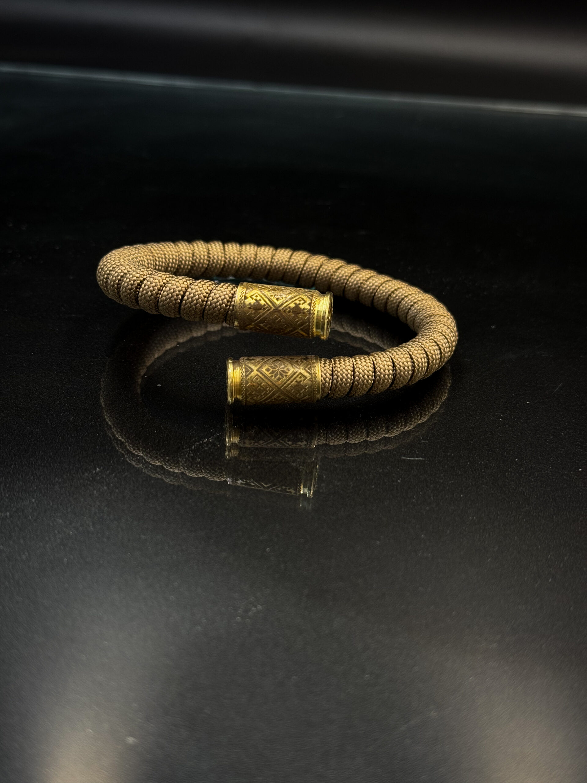 Стильний браслет, створений із використанням паракордової мотузки та латунних елементів від гільз. Ідеально пасує до мінімалістичного стилю, додаючи акцент мужності й оригінальності.