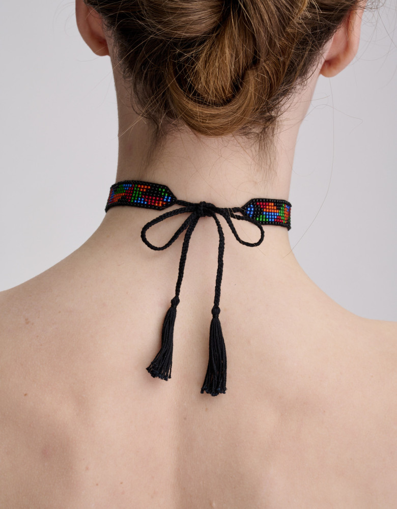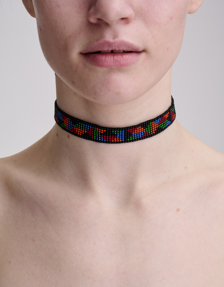 Намисто-чокер “Веселковий” — витончена прикраса, створена вручну з бісеру. У ній сучасна лаконічність зустрічається з народними мотивами, утворюючи гармонійне доповнення до вишиванки, лляної сукні чи щоденного образу з натяком на традицію.