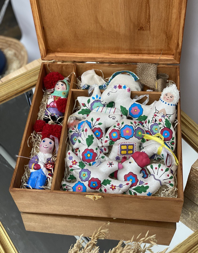 Пошиті з натуральних тканин, наповнені синтепоном й розписані акриловими фарбами, іграшки – символи хизуються традиційними флористичними орнаментами , насиченими кольорами та впевнено стверджують: навіть після найлютіших морозів неодмінно настане весна і добро квітнутиме казковими барвами.
