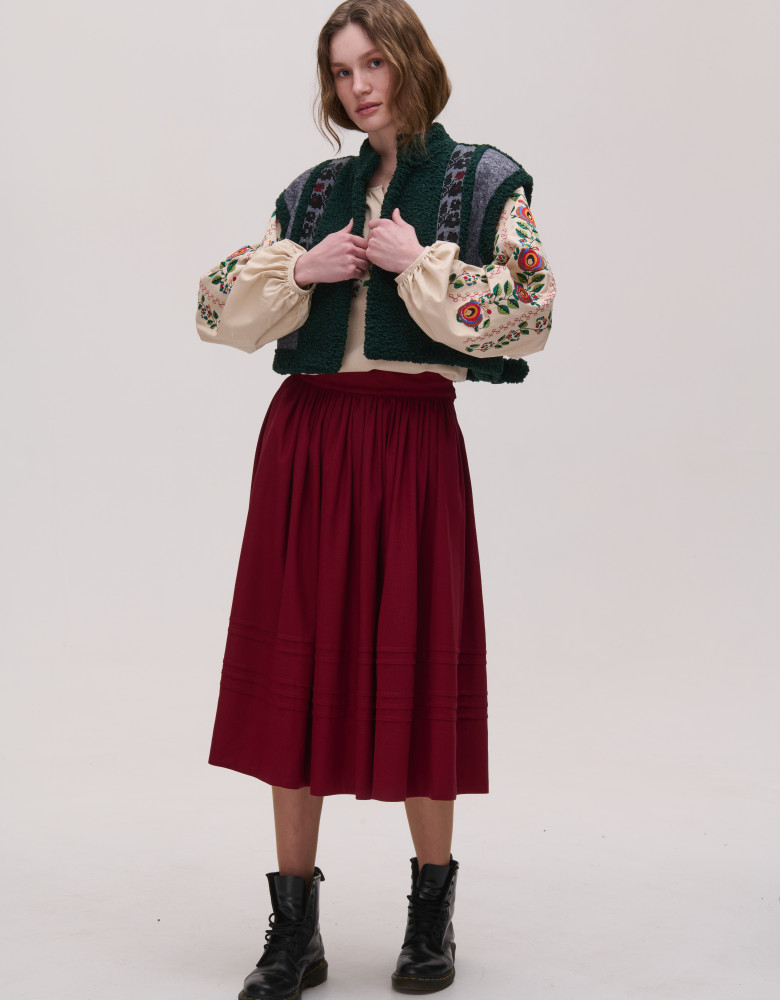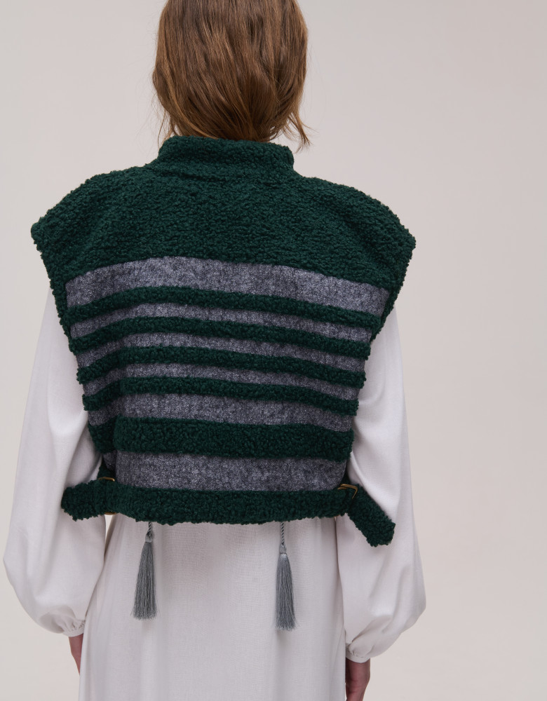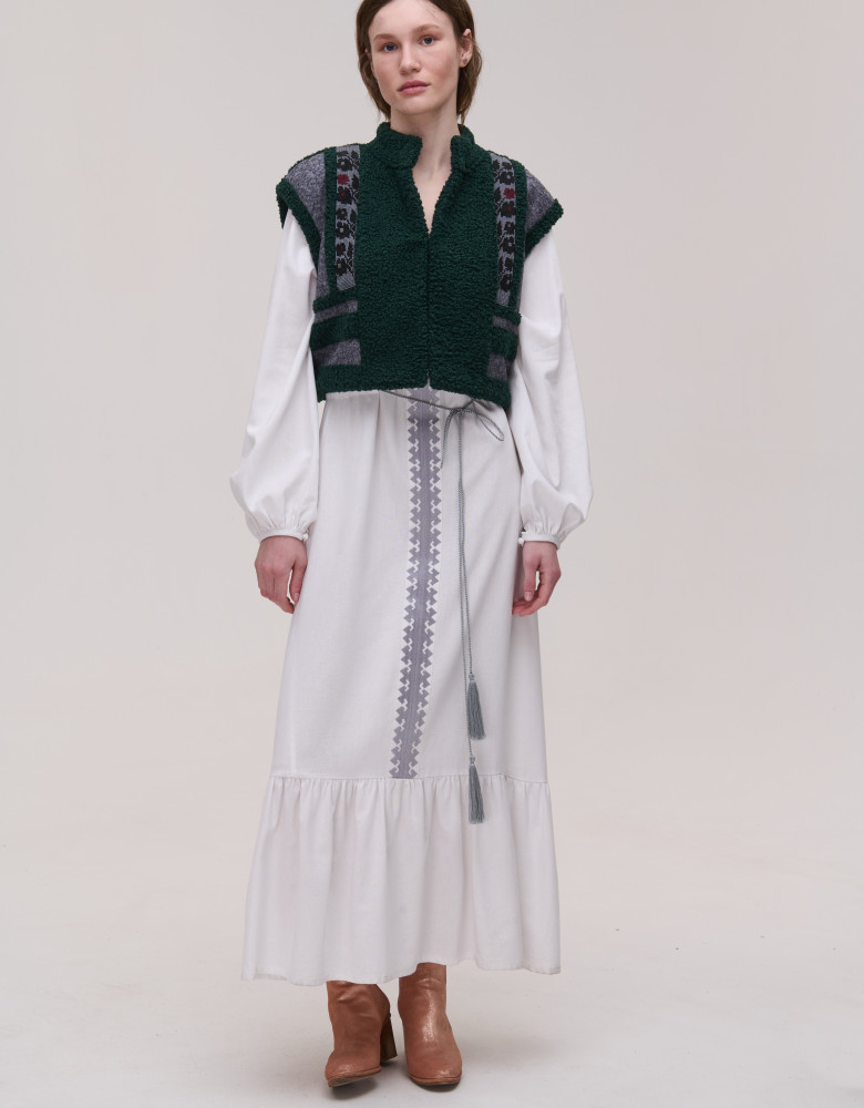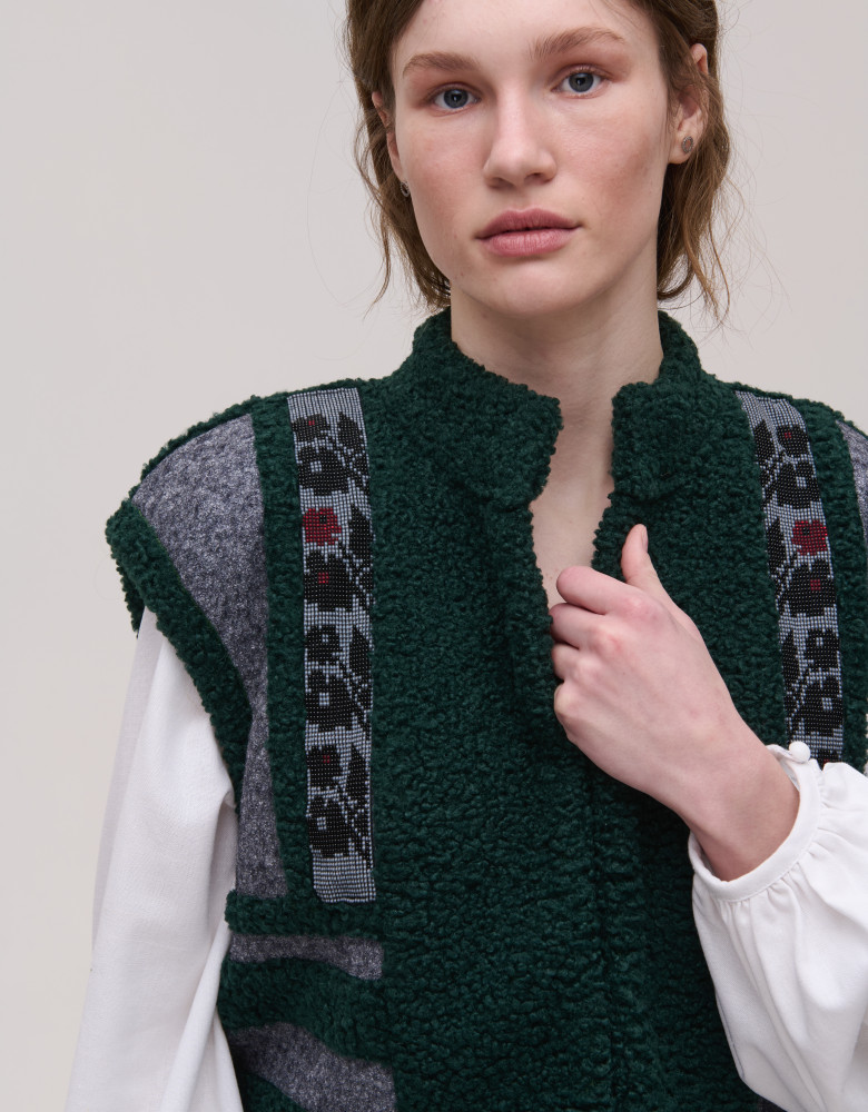 Колекція кептарів “Маланка”, інспірована традиційним верхнім одягом України. Візерунок з бісеру розроблений у стінах нашої майстерні. Дизайнерка надихалася вишитими гуцульськими кептарями, які щедро оздоблюються і донині. “Прикраса сих кожухів взята по найбільше з царини рослин, менше або більше стилізовані взори, цвіти, листки уложені у в’язанки” – писав австрійський інженер Еріх Кольбенгаєр, що досліджував орнаменти вишивок на Буковині.