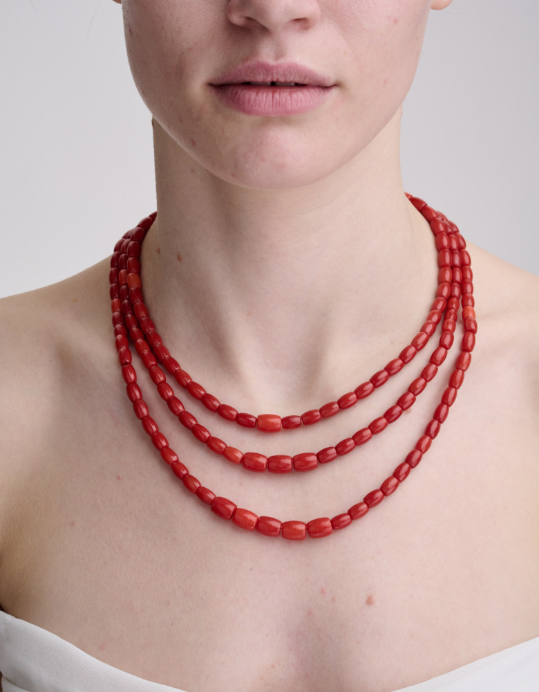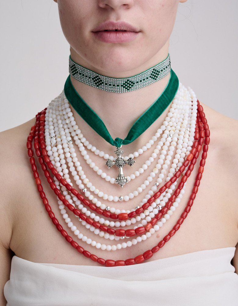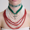 Комплект намиста, що об’єднує в собі чарівливий перламутр, теплий теракотовий корал та елегантні чокери, створений для тих, хто шукає вишуканість та природну красу в одному образі.