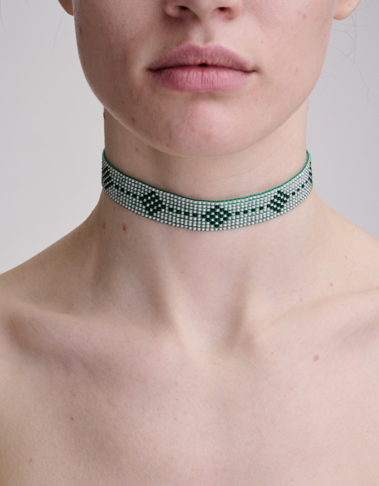 Чокери, виготовлені з увагою до деталей, додають цьому комплекту стильність і сучасність. Вони ідеально доповнюють намисто, створюючи завершений і гармонійний образ.
