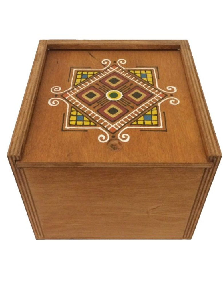 Ця коробка з темної фанери з графічним малюнком — стильний і практичний аксесуар для вашого дому. Вона ідеально підходить для зберігання дрібниць або як елемент декору.