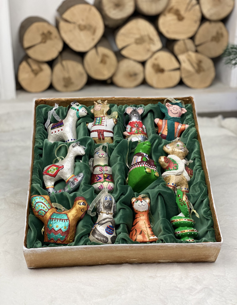 Кожна фігурка виготовлена вручну з увагою до деталей і вкладає у себе частинку майстерності та тепла. Усі елементи упаковані в елегантну квадратну коробку ручної роботи, яка додає виробу ще більшої цінності. Це ідеальний вибір для тих, хто хоче подарувати символічний подарунок або додати унікальний акцент до святкового декору. Набір чудово поєднує традиції та сучасність, створюючи незабутні враження.