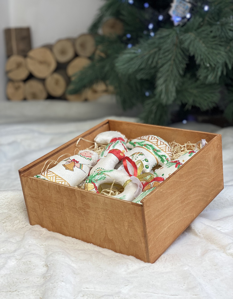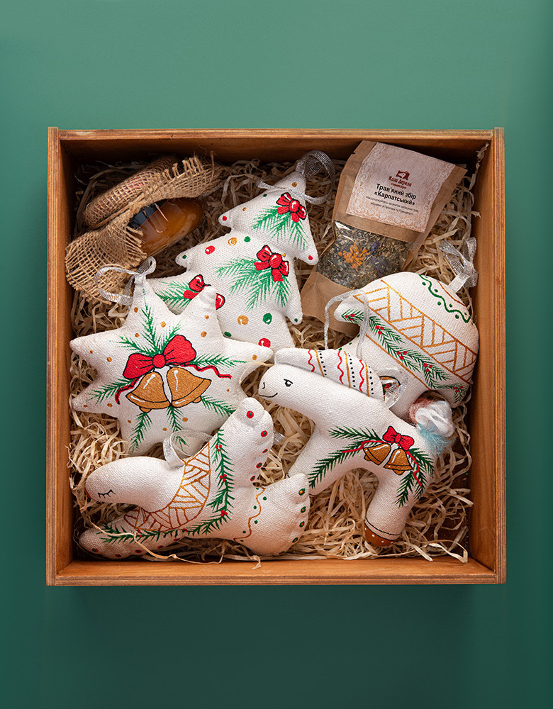 Кожна іграшка у наборі має свій власний, унікальний дизайн, виготовлений вручну – є виразом творчості та старанної роботи майстра. Сувеніри виготовлені з безпечних, екологічно чистих матеріалів, що робить їх приємними на дотик та безпечними для всіх членів сім’ї.
