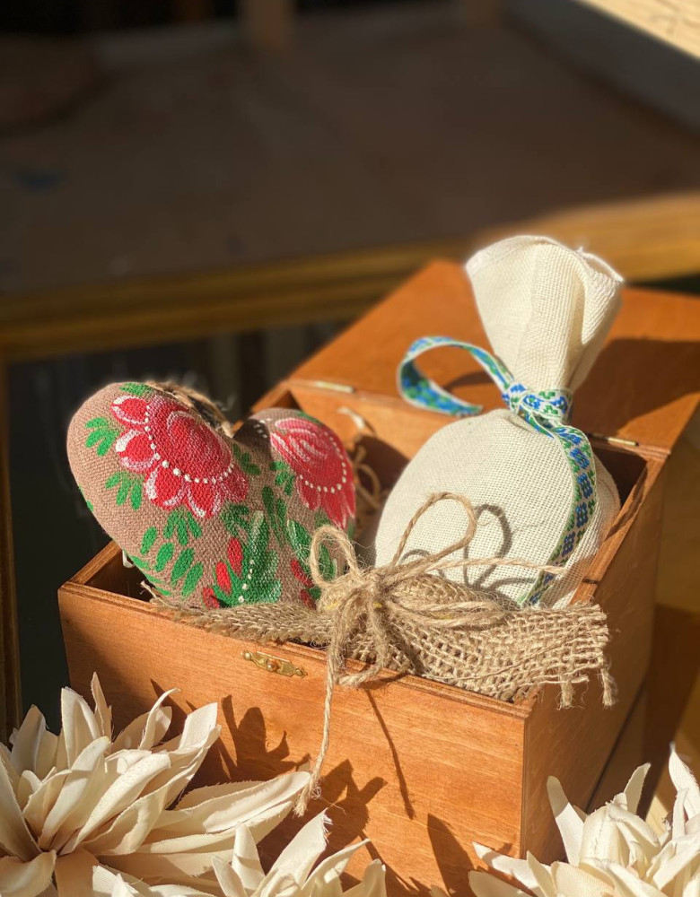 Набір ‘Серденько’ — це символ любові, тепла та турботи. Унікальні елементи, виготовлені вручну з натуральних матеріалів, передають щирість почуттів і додають святкового настрою. Стильний та елегантний, цей набір стане чудовим подарунком для тих, кого ви цінуєте, або затишною прикрасою вашого дому.