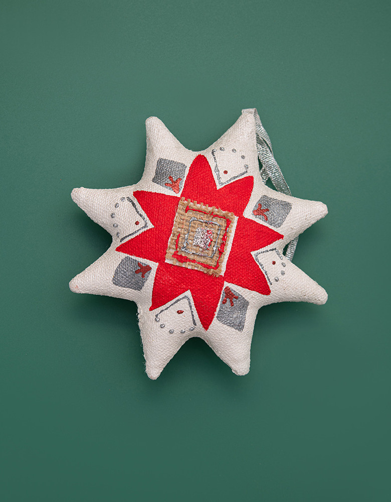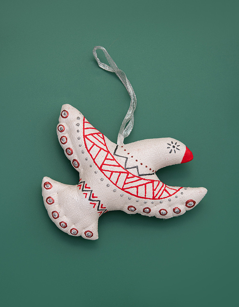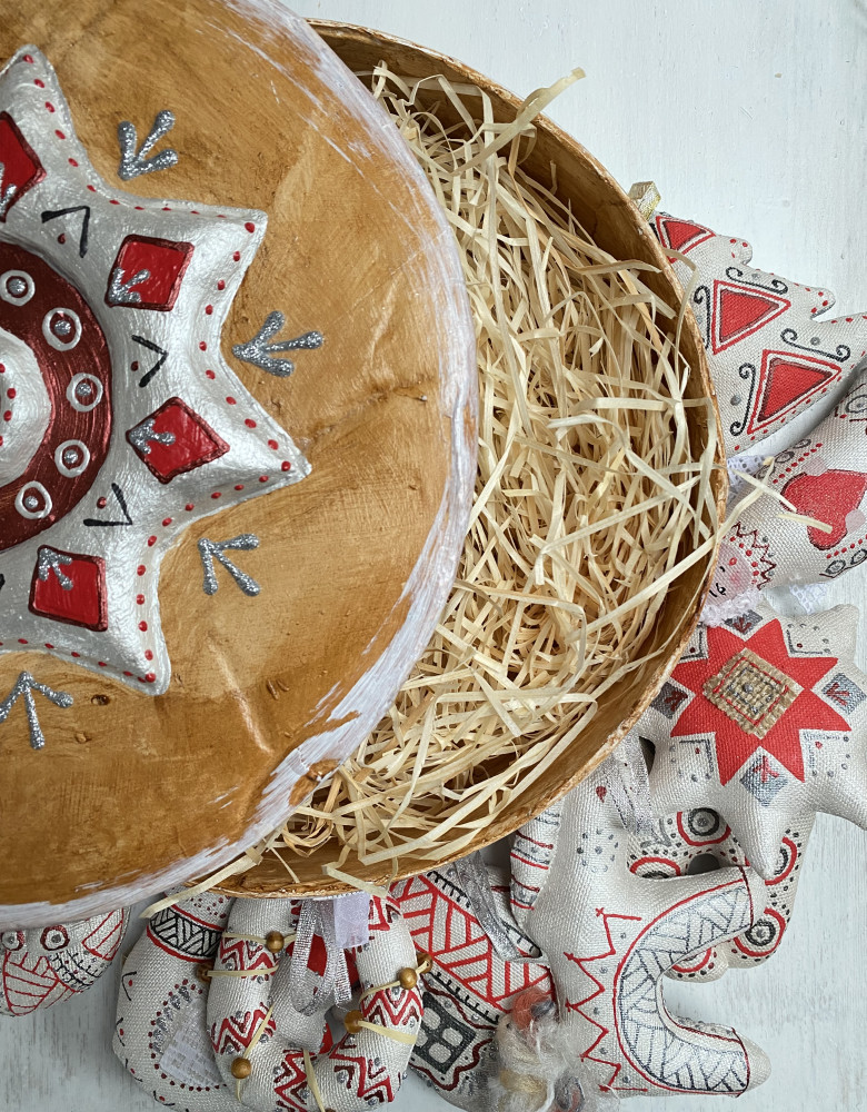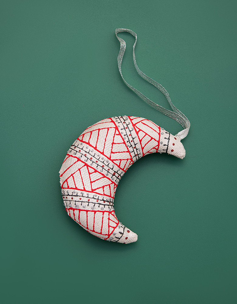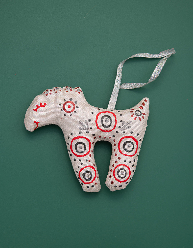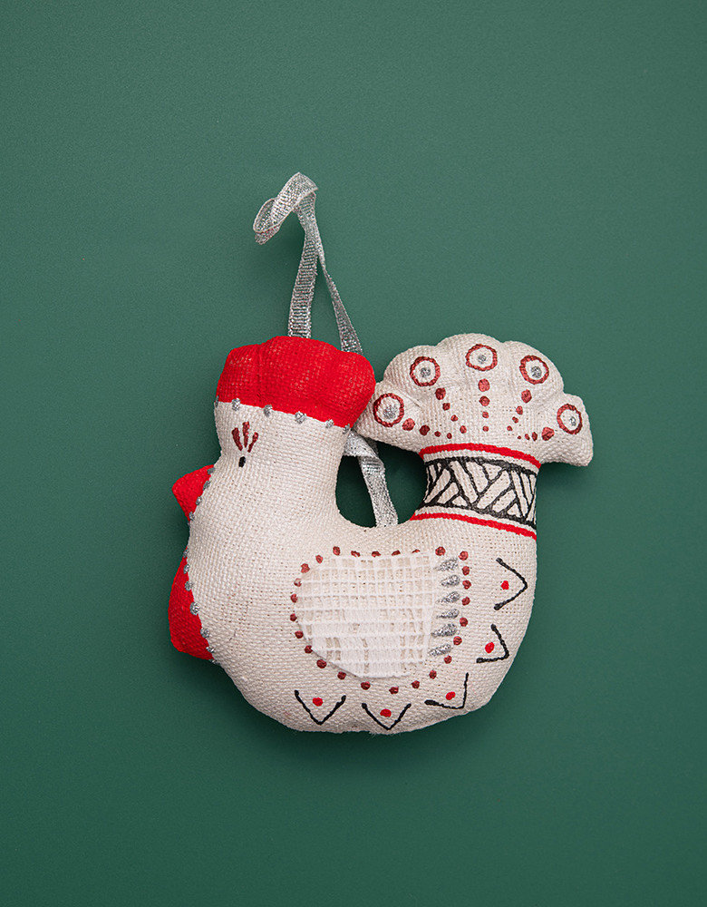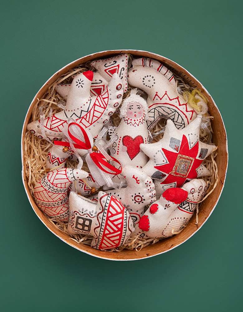 Як вартові спогадів, ми втілили їх у крафтовій колекції «Срібночервона», втіливши традиційні розписи в святкових кольорах Різдва. Іграшки виготовлені з натуральних тканин, наповнені синтепоном й розмальовані акриловими фарбами. Кожна із прикрас берегтиме тепло улюблених історій.