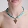Дозвольте вашому стилю випромінювати природну красу та елегантність з нашим намистом з бірюзи та латунним хрестом. Це унікальне намисто вражає не тільки своєю витонченістю, але й приголомшливою красою бірюзового говліту, який додає йому особливий шарм.