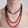 Склад намиста: корал бобечка, чорний матовий шунгіт. Вставки – срібний хрест 925, гематит, фурнітура – сплав під срібло.