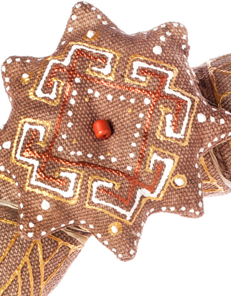 Віночок пошитий з натуральних тканин, наповнений синтепоном. Основа покрита розчином какао та кориці, що має приємний аромат. Розписаний вручну нашими майстрами з використанням якісних акрилових фарб. Задекорований аплікаціями ручної роботи. Іграшка стійка до стирання та впливу зовнішнього середовища.