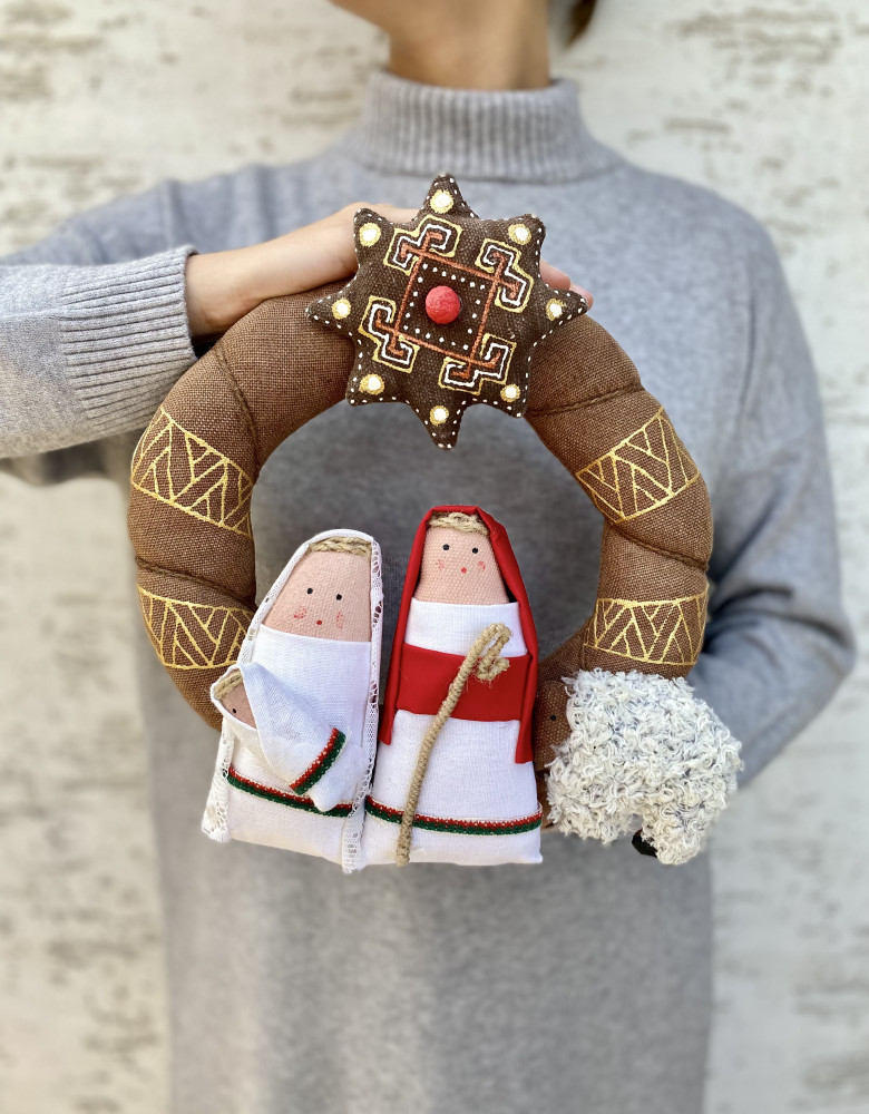 Різдвяний віночок із зображенням Святої родини віщує добробут та безмежну любов вашому дому. У нашому розумінні образ Святої родини символізує тепло та благодать, саме тому ми вирішили створити віночок-оберіг, що обов’язково стане однією з ваших сімейних реліквій, втіленням Українського Різдва.