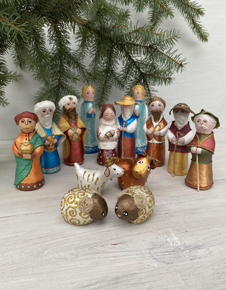 трьох царів і пастухів, фігурками тваринок — віслюк, верблюд, корівка й коза.