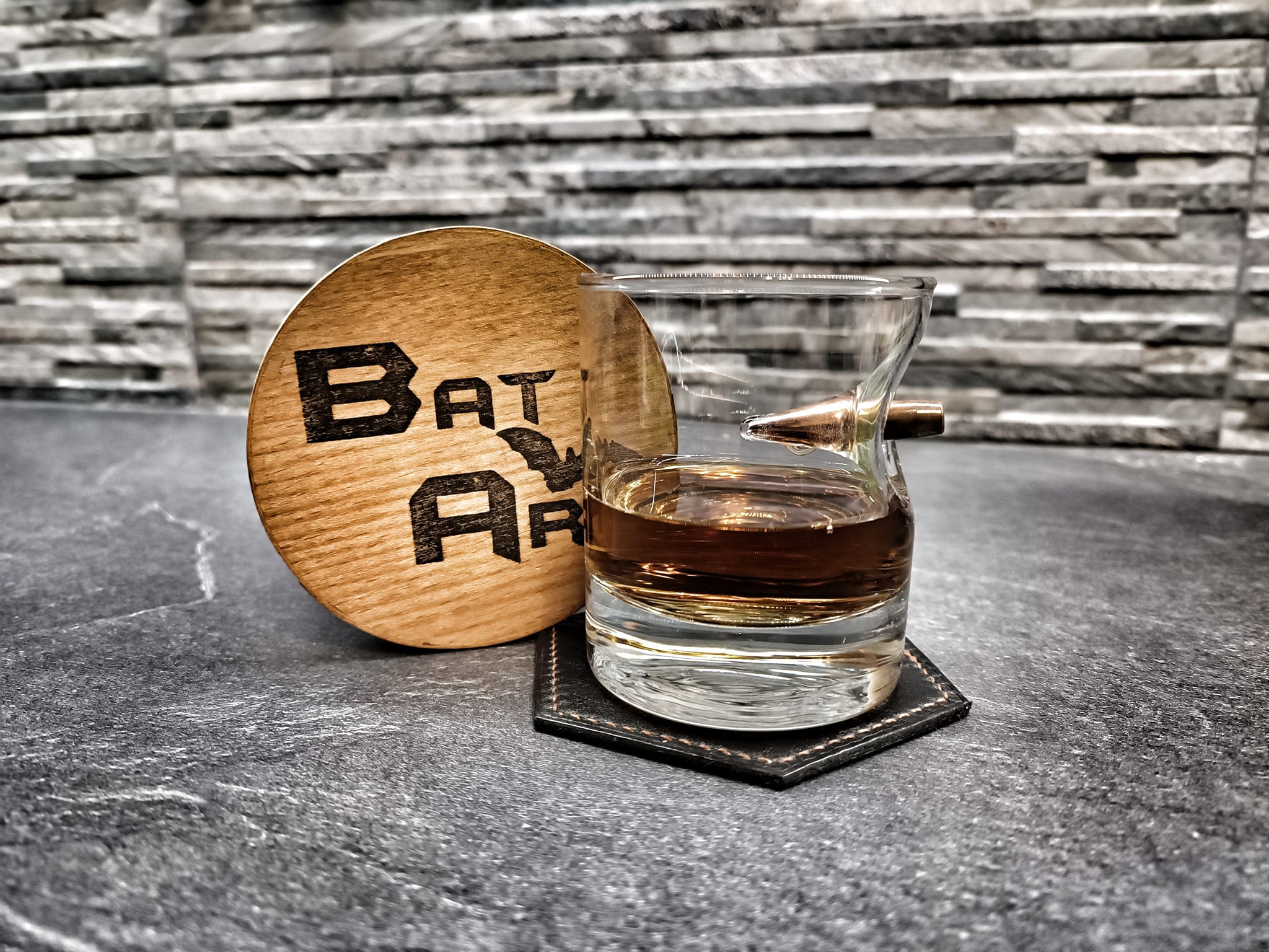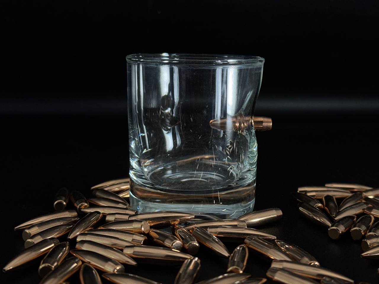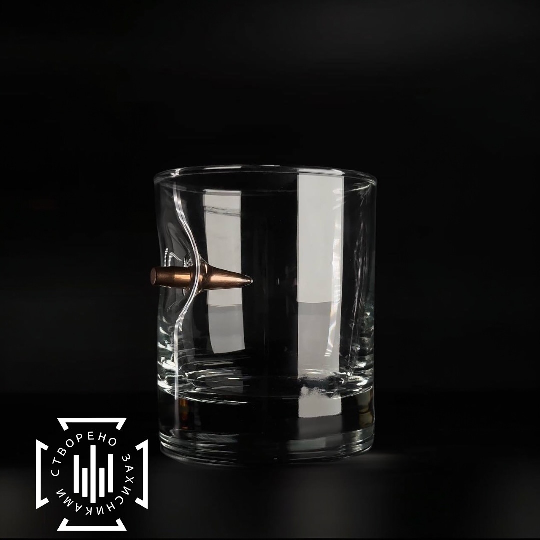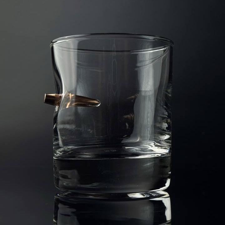 Ця вишукана склянка для віскі – це не просто посуд, а справжній витвір мистецтва, який поєднує в собі елегантність і брутальність. Головною особливістю склянки є справжня куля, зазвичай калібру 7.62 мм, яка застигла в товщі скла. Це додає келиху особливого шарму і робить його справді унікальним.