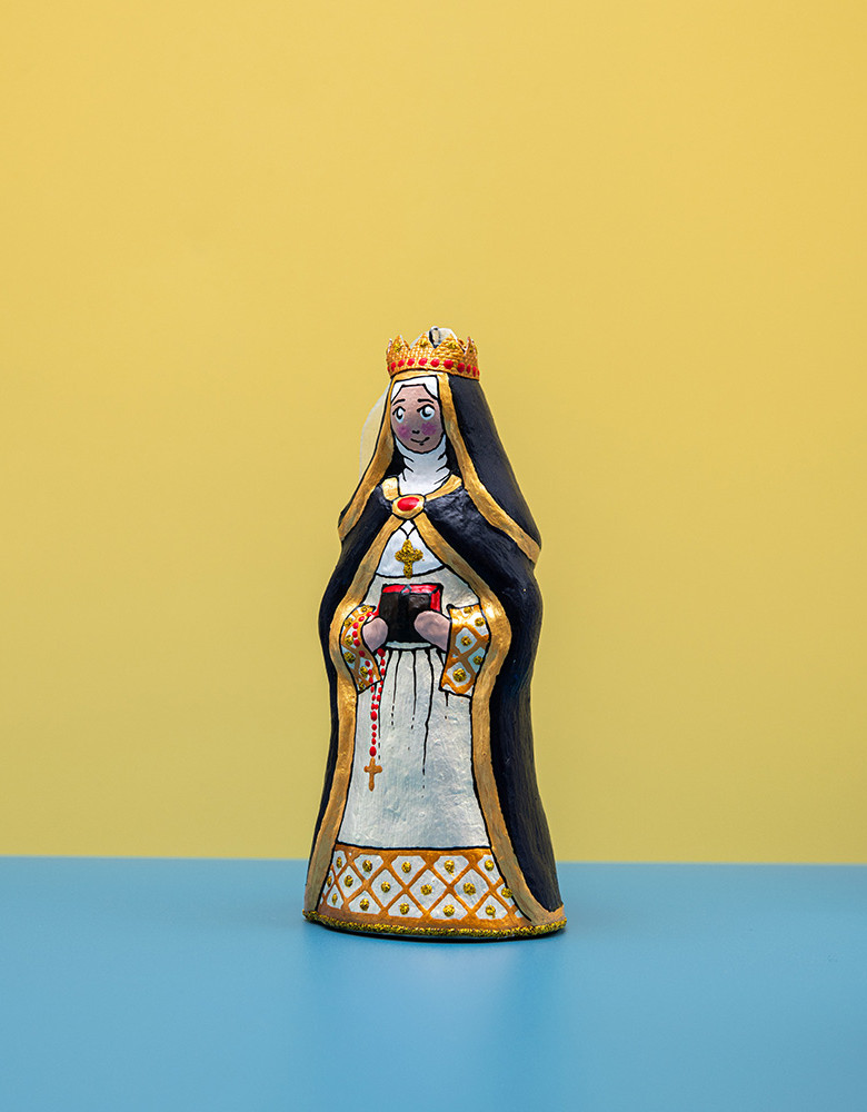 Кожна фігурка виліплюється руками, запікається при високих температурах, шліфується і розписується нашими майстрами вручну акриловими фарбами за зразком вінтажних прикрас. Завдяки цій обробці вони є міцними та стійкими до механічних пошкоджень. Дрібні елементи для кожної фігурки, як сто років тому, ми дбайливо виліплюємо з вати та декоруємо їх тканинними аплікаціями. Безпечні для дітей і тварин, бо не б‘ються. Екологічні та довговічні.