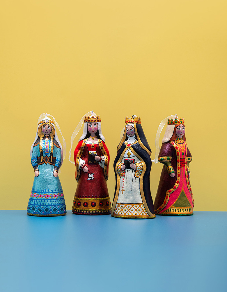 Кожна фігурка виліплюється руками, запікається при високих температурах, шліфується і розписується нашими майстрами вручну акриловими фарбами за зразком вінтажних прикрас. Завдяки цій обробці вони є міцними та стійкими до механічних пошкоджень. Дрібні елементи для кожної фігурки, як сто років тому, ми дбайливо виліплюємо з вати та декоруємо їх тканинними аплікаціями. Безпечні для дітей і тварин, бо не б‘ються. Екологічні та довговічні.
