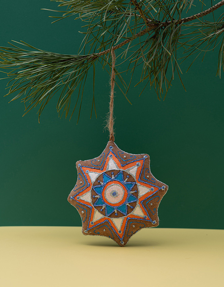 Зірочки цієї колекції ілюструють зимові українські свята, пошиті з натуральних тканин, наповнені синтепоном, розписані вручну тернопільськими майстрами.