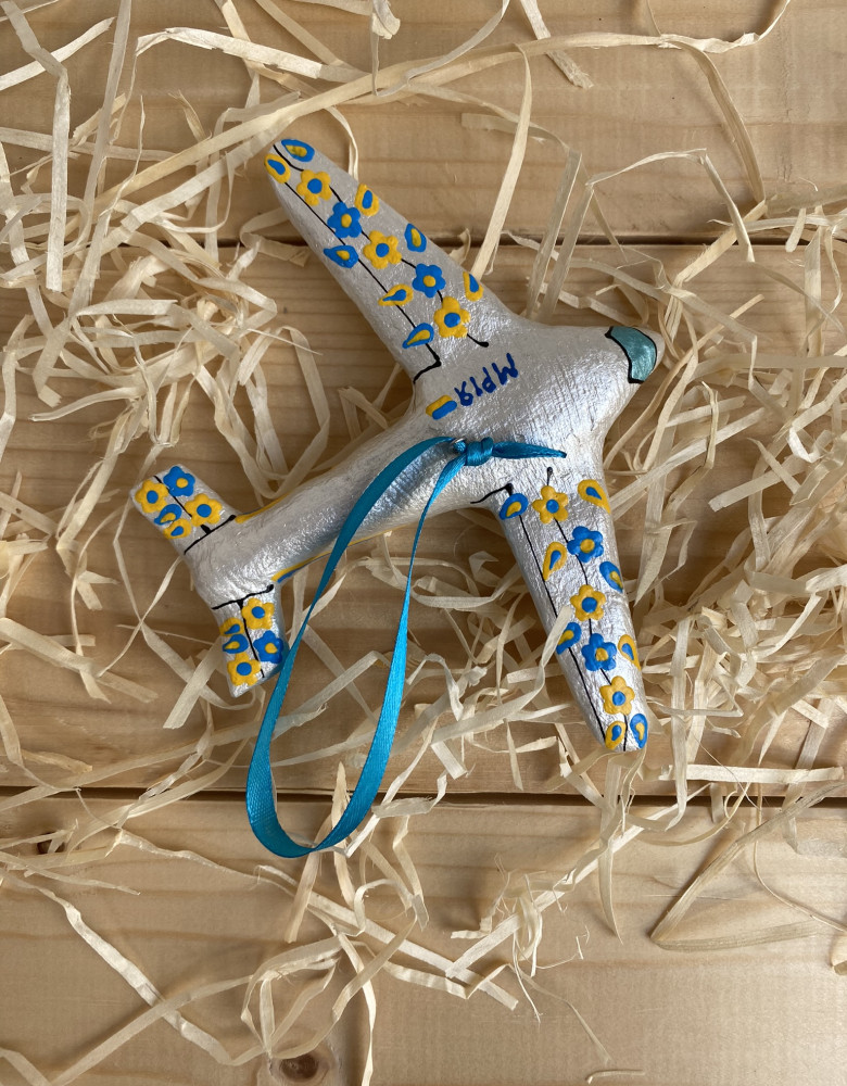 Іграшка виготовлена в авторській техніці з використанням суміші паперу, тирси, води, гречаного лушпиння та клейстеру.