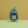 Як і справжні писанки, сувенір виготовлено з натуральних тканин, етно розписи виконані вручну. Великодні яйця задекоровано стрічкою наших вільних, блакитно-жовтих, кольорів.