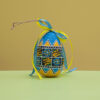 Як і справжні писанки, сувенір виготовлено з натуральних тканин, етно розписи виконані вручну. Великодні яйця задекоровано стрічкою наших вільних, блакитно-жовтих, кольорів.