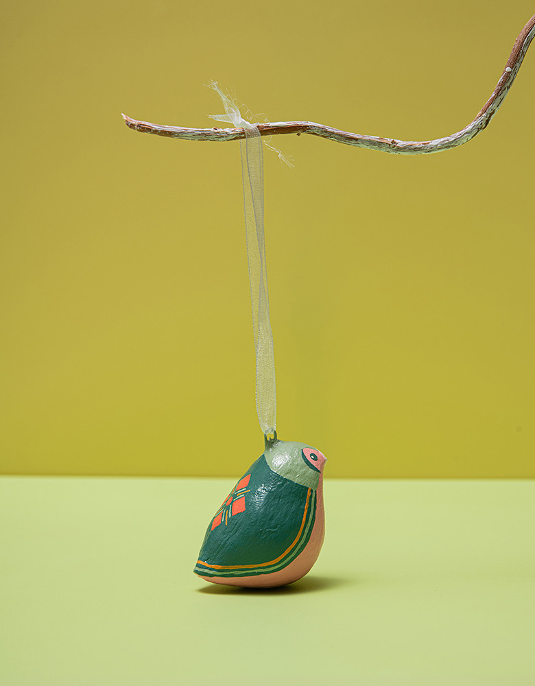 Маленька пташка, що несе у собі тепло рук і спокій української природи. “Пташечка щебетунка” створена вручну з натуральних матеріалів — дерев’яної тирси, меленого паперу, гречаного лушпиння та клейстеру на основі борошна. У процесі виготовлення ці матеріали змішуються у щільну масу, яка випікається у спеціальній формі — немов печиво.