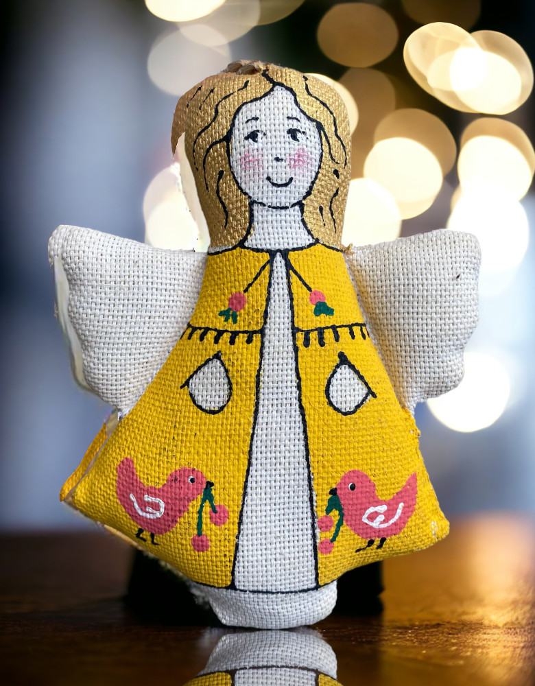 Птахи повертаються з теплих країв та починають влаштовувати свою багатоголосу співочу майстерню. Пернатим настільки полюбилася жовта сукенка янгола, що вони осілися на ньому. Янгол – передвісник надії, добра та захисту.