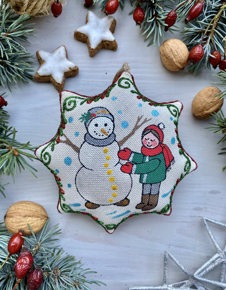 | Технологія і склад | Ручна робота, натуральна тканина, акрилові фарби, наповнювач – синтепон |