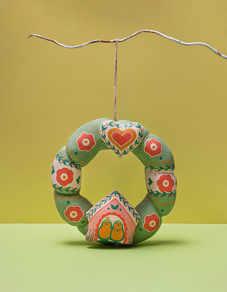 Витончений текстильний віночок, що символізує тепло родинного вогнища. Його композиція натхненна українськими традиціями, де гніздо є символом добробуту, захисту та продовження роду. Ручна робота, натуральні матеріали, легкий аромат ванілі.