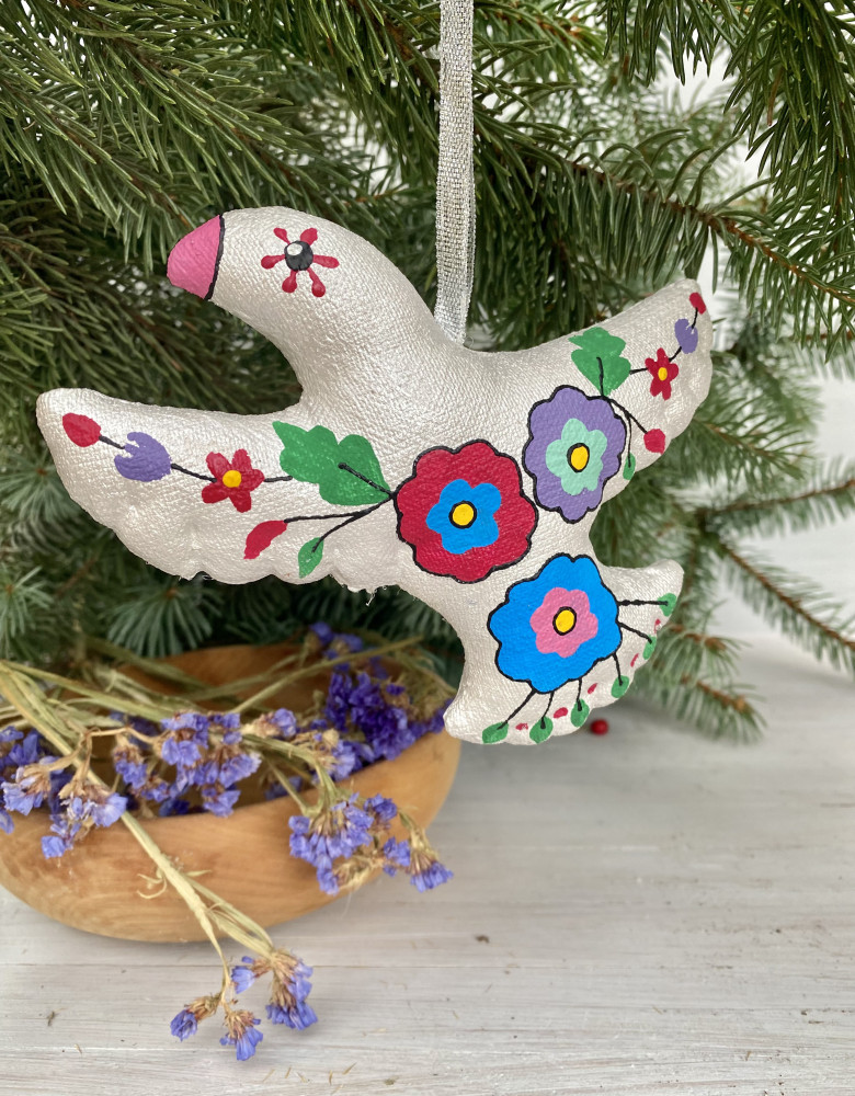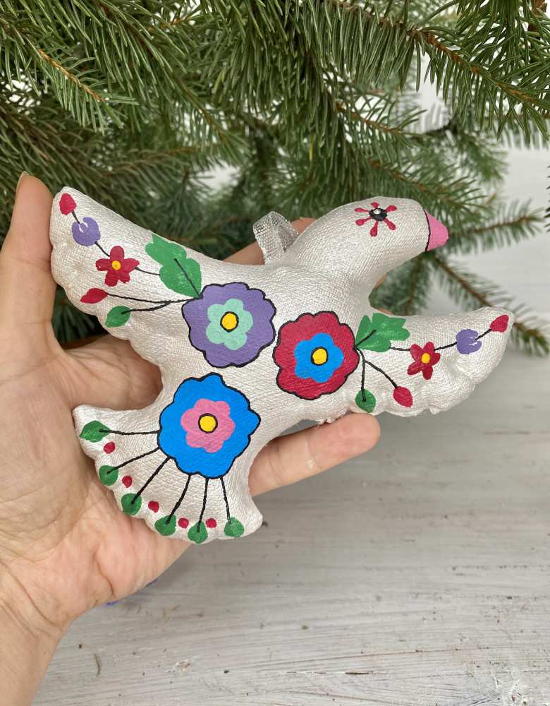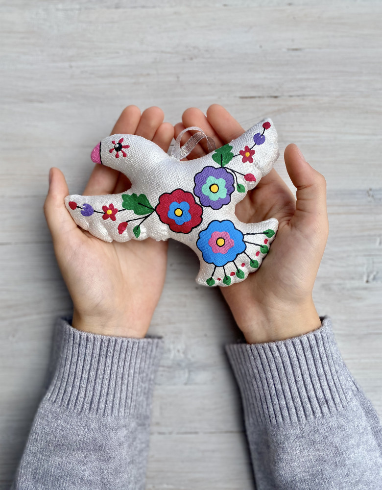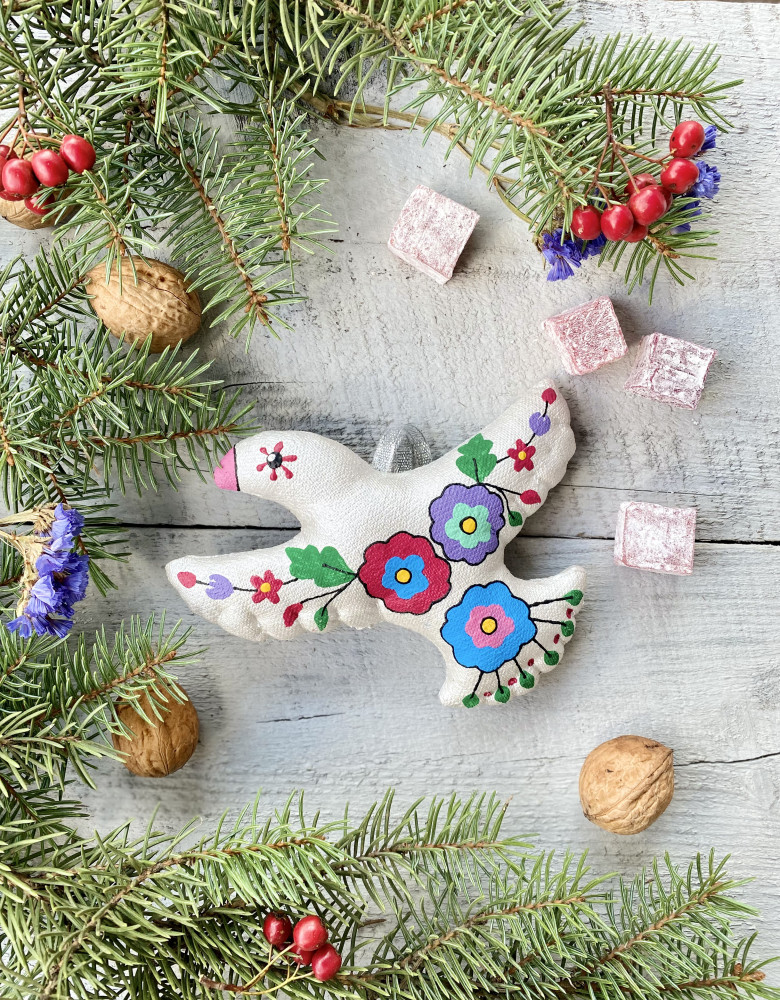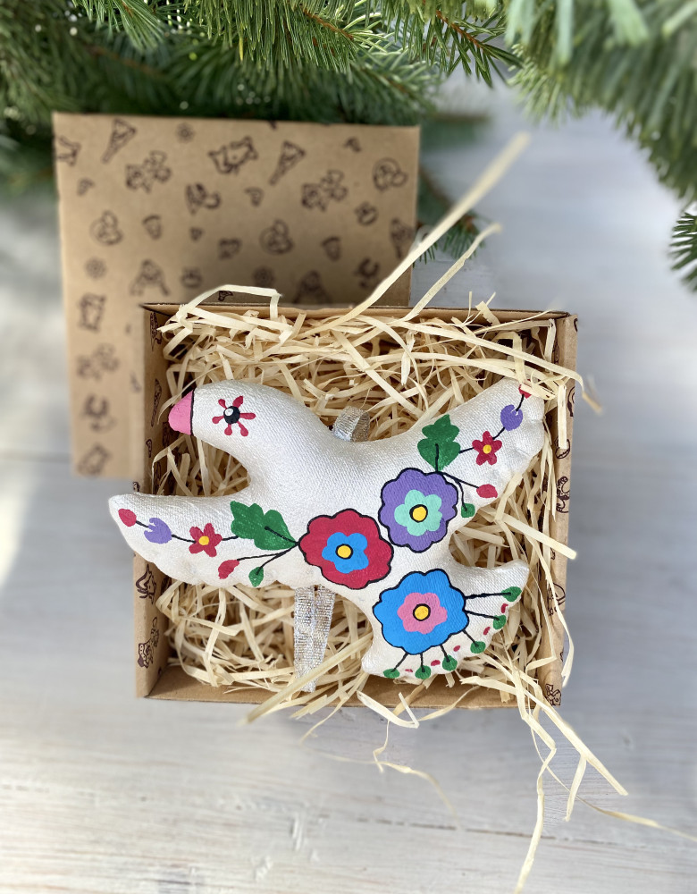 Пошиті з натуральних тканин, наповнені синтепоном й розписані акриловими фарбами, іграшки – символи хизуються традиційними флористичними орнаментами , насиченими кольорами та впевнено стверджують: навіть після найлютіших морозів неодмінно настане весна і добро квітнутиме казковими барвами.